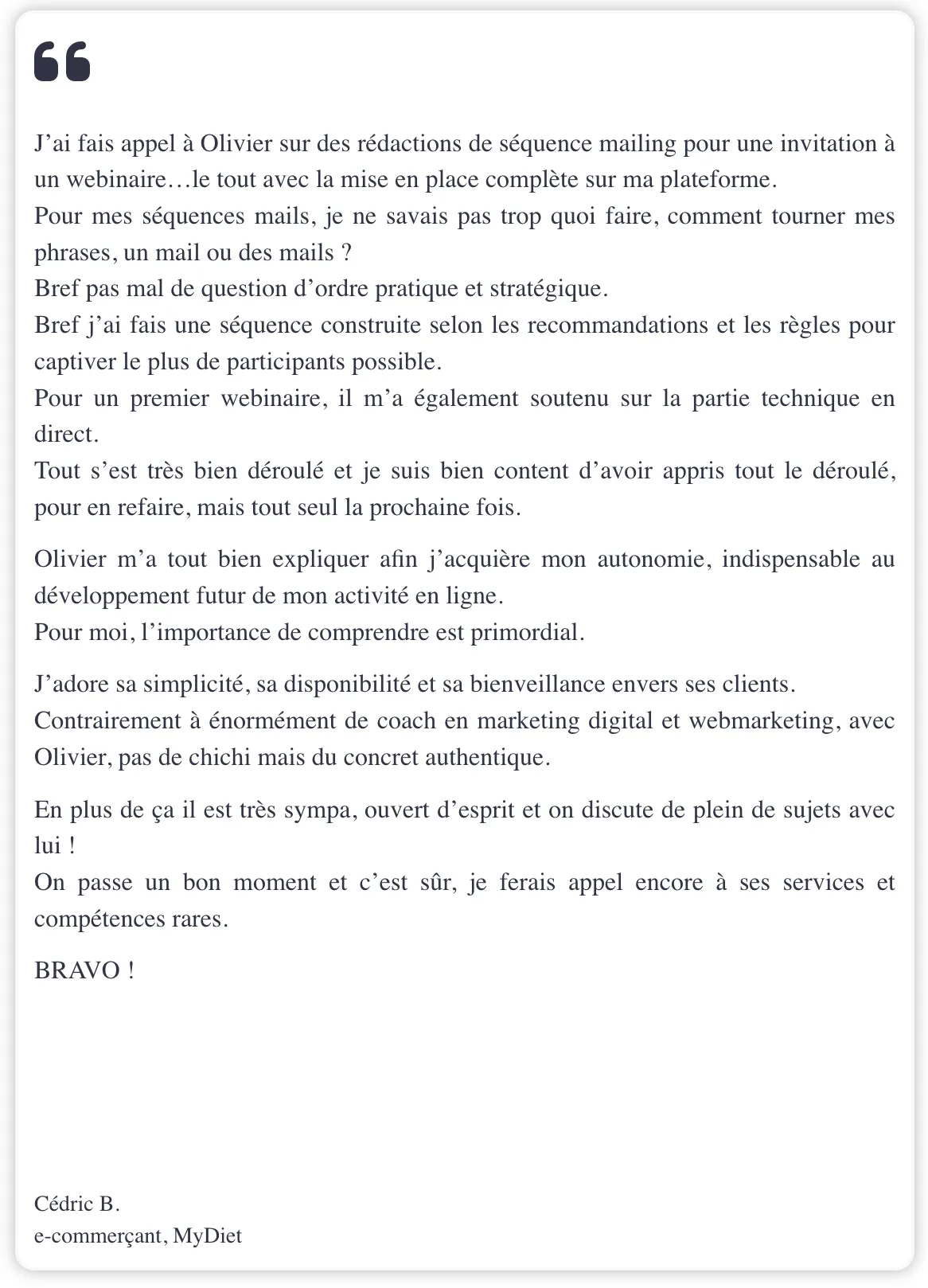 On clarifie ton message, ta cible et ton offre. On enlève le flou. Tu sais quoi dire et à qui.