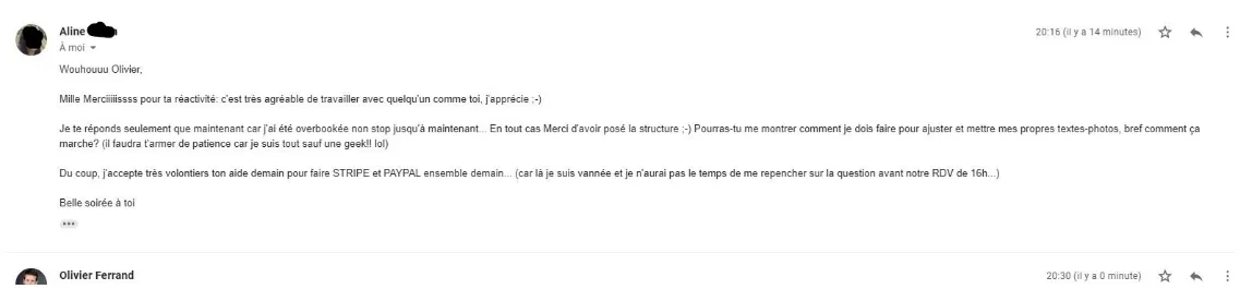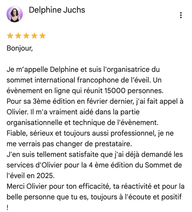● Discussion écrite · ● Réponse rapide · ● Direct avec Olivier